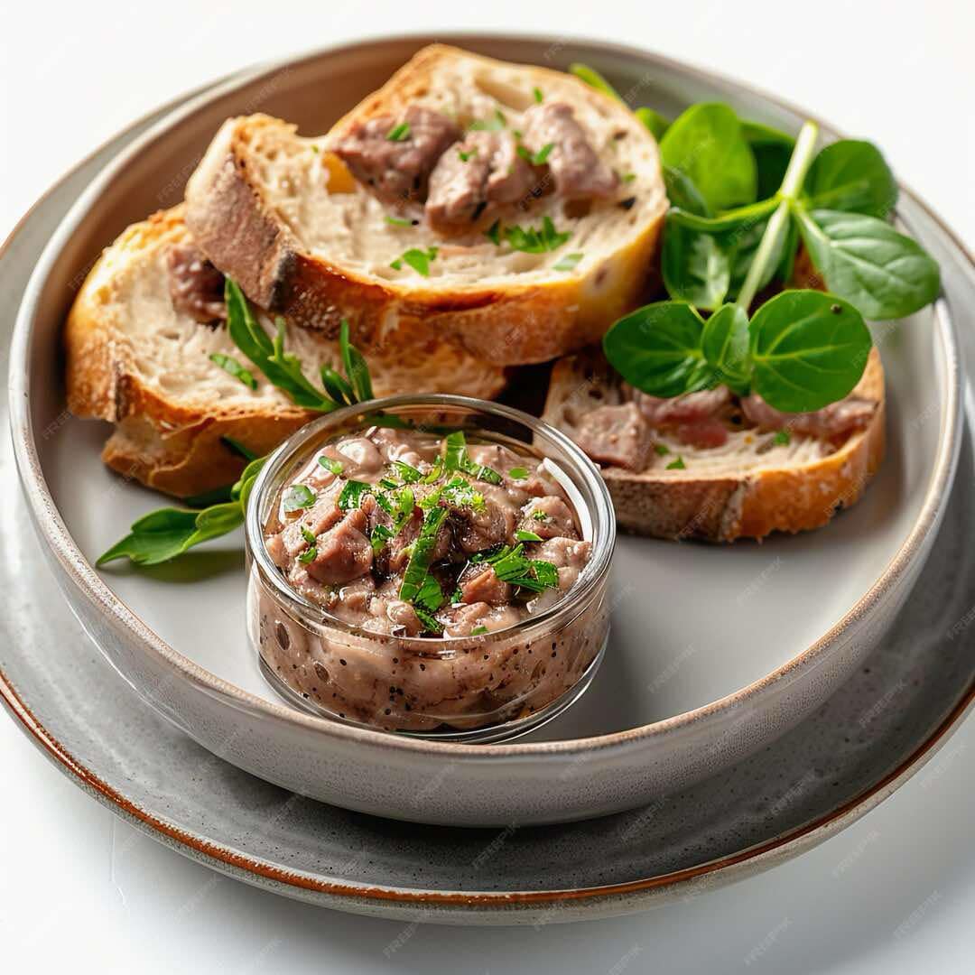 Paštika z husích jater s rozpečenou bagetkou, salátek