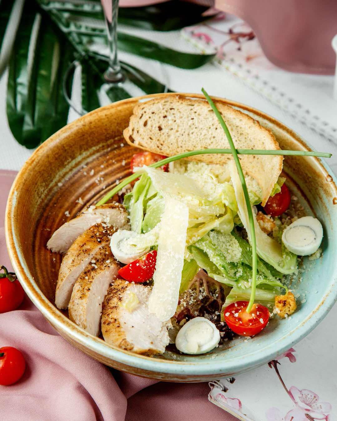 Salátek s husím prsíčkem, bagetka